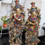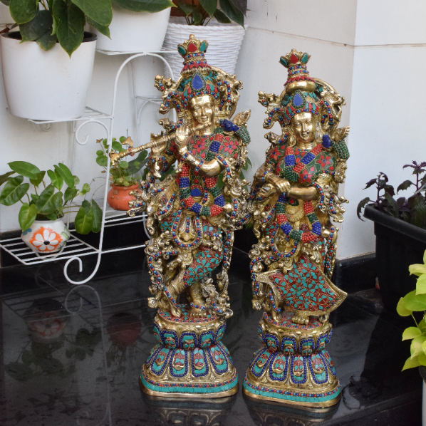 BRASS RADHA KRISHNA WITH INLAY OF GEMS STONE 30 INCH SIZE 16 KG EACH
