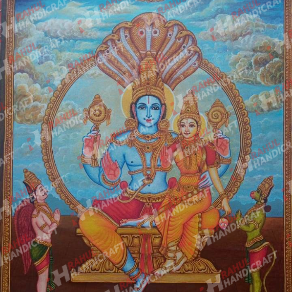 THANJOOR STYLE VISHNU LEXMI IN CANVAS ACRYLIC HAND PAINTED ARTIST SAJI
